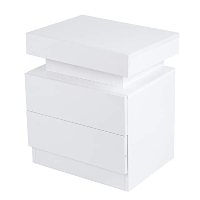 - Questo comodino rifinito da un alto anteriore lucido, dotato di elementi di vetro satinato decorati intorno, con il retroilluminato a LED attraverso il migliortto per creare il caldo orario di andare a letto per la tua camera da letto.