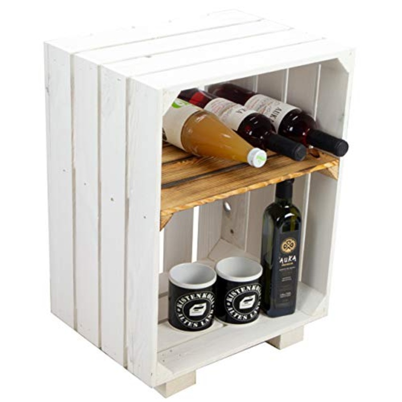 Comodino in legno Kistenkolli Altes Land con scomparto fiammato, cassettiera in legno e ripiano per frutta e verdura, colore: bianco