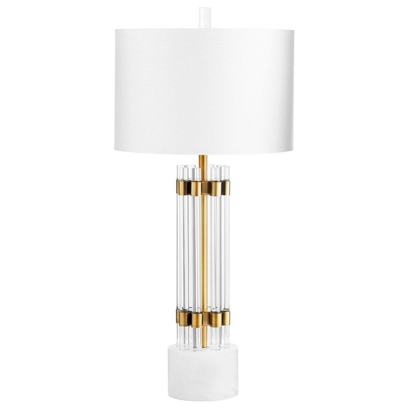 -Contemporary 1 Light Tall Table Lamp with Beveled Glass Tubes-Marble & Brass Base with Round White Drum Shade . -Shade Included: Yes*Shade Included: Off-White Linen Product ID181652845Manufactured ByBailey Street HomeSold ByBailey Street HomeSize/WeightW