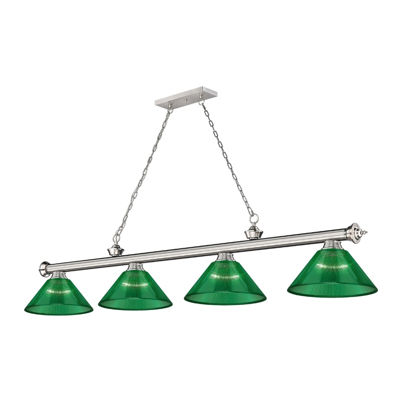 Cordon 4-Light Billiard Brushed Nickel Cone Green Acrylic