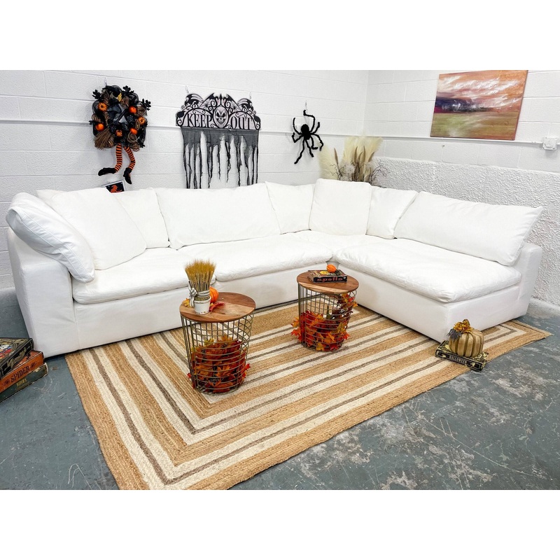 Cost Plus 4 piece Modular Cloud Couch w/ washable slip cover and cushion coversNew price: $2500Your price: $1,295 About 3 years old, in LIKE NEW condition with No Rips, No Stains, No Damage, Pet-free. and Smoke-free. It has been professionally cleaned and conditioned to freshen it up for a new home. Cushions and bases have memory foam and feathers. Boxes have springs with a thick base of memory foam and padding. Super comfy. FREE DELIVERY within 10 miles of Holliston and a small fee beyond that based on distance. COLORWhite DETAILSLike-New ConditionMemory Foam cushionsModular and configurableFull Slip Cover and Washable coversNo StainsNo RipsNo DamageSmoke-freePet-freeProfessionally cleanedFull Delivery Available DIMENSIONS136″W X 90″D (as shown)28″H PAYMENTSWe accept Cash, Venmo, Cash app, Apple Pay, PayPal, Credit Card, and AcimaFirst come, first serve.10% deposit holds it until delivery. Other Notes:Carpet and white throw pillows not included.Existing couch purchase/removal available.