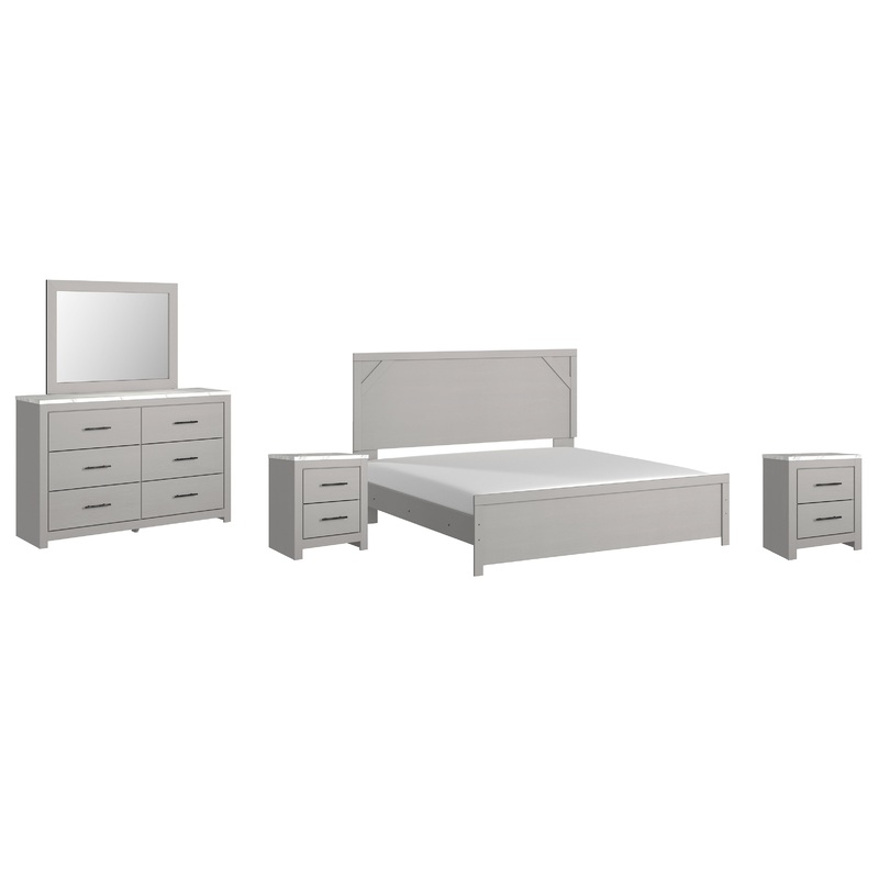 Cottonburg King Panel Bed with Mirrored Dresser and 2 Nightstands