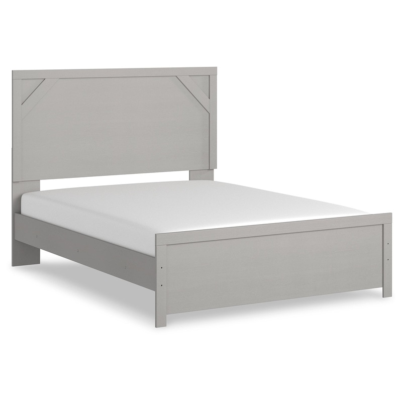 Cool, clean and casually modern. This queen panel beds wispy dove gray finish sets the tone for your calming sanctuary. Framed elements and cross-brace accents add dimension and authenticity to the beds simply stunning profile.