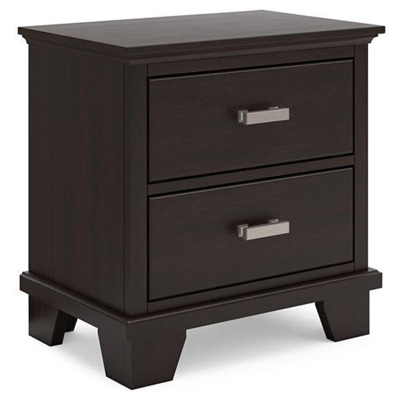 Feast your eyes on this richly versatile nightstand. Its traditional-inspired dark brown finish effortlessly blends with contemporary bright nickel-tone pulls to create a stunning look that’s not too stuffy or too trendy. Spacious drawers offer plenty of room to tuck away your bedside must-haves.