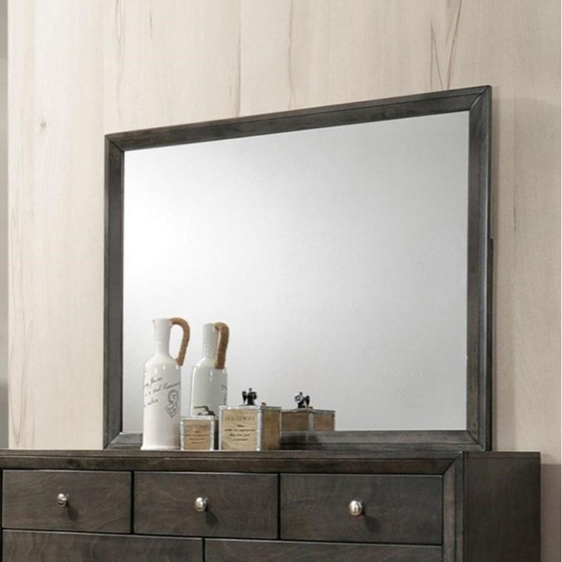 Crown Mark Furniture Evan Mirror in Grey B4720-11. This Evan Mirror from Crown Mark features a contemporary style, a grey finish, and clean lines. Pair with the matching dresser to complete the look of the set.