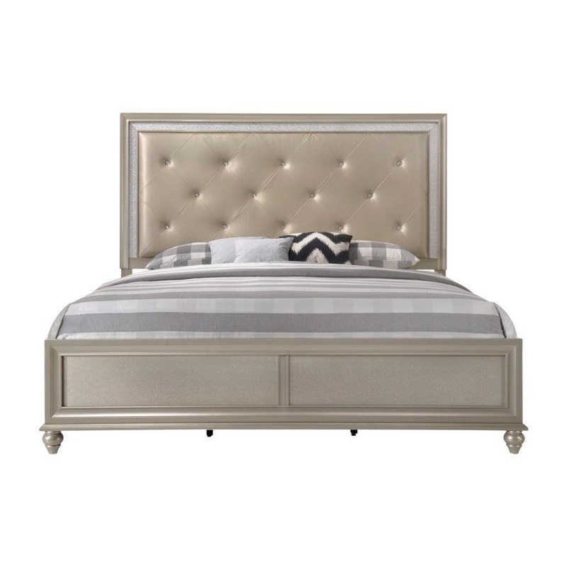 Crown Mark Furniture Lila Queen Panel Bed in Champagne Faux
