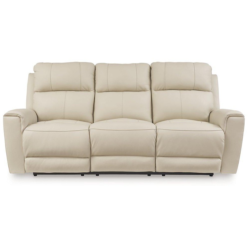 Focus on function. This practical power reclining sofa balances contemporary character and irresistible comfort. Its affordable, expertly matched leather and faux leather upholstery keeps your style up to speed without breaking the bank. Reclining at the touch of a button, the sofa plays well in relaxed, luxe seating areas made for quality time.
