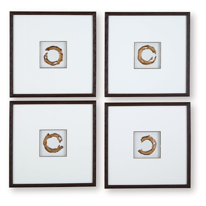 Taking an abstract approach to neutrals, this wall art set seamlessly balances an elevated feel with inviting style. The white and gold images are enhanced with hand painted embellishments, and each piece is beautifully framed in a dark brown shadowbox. Double matting further highlights the curated feel of this collection.