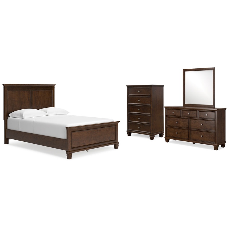 Danabrin Full Panel Bed with Mirrored Dresser and Chest