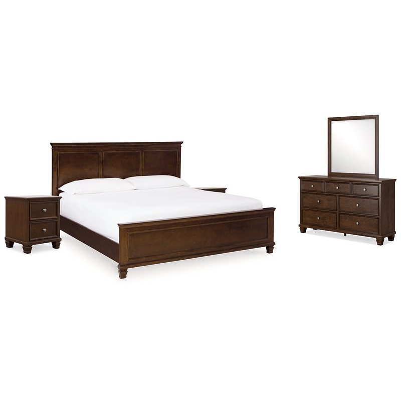 Danabrin King Panel Bed with Mirrored Dresser and 2 Nightstands