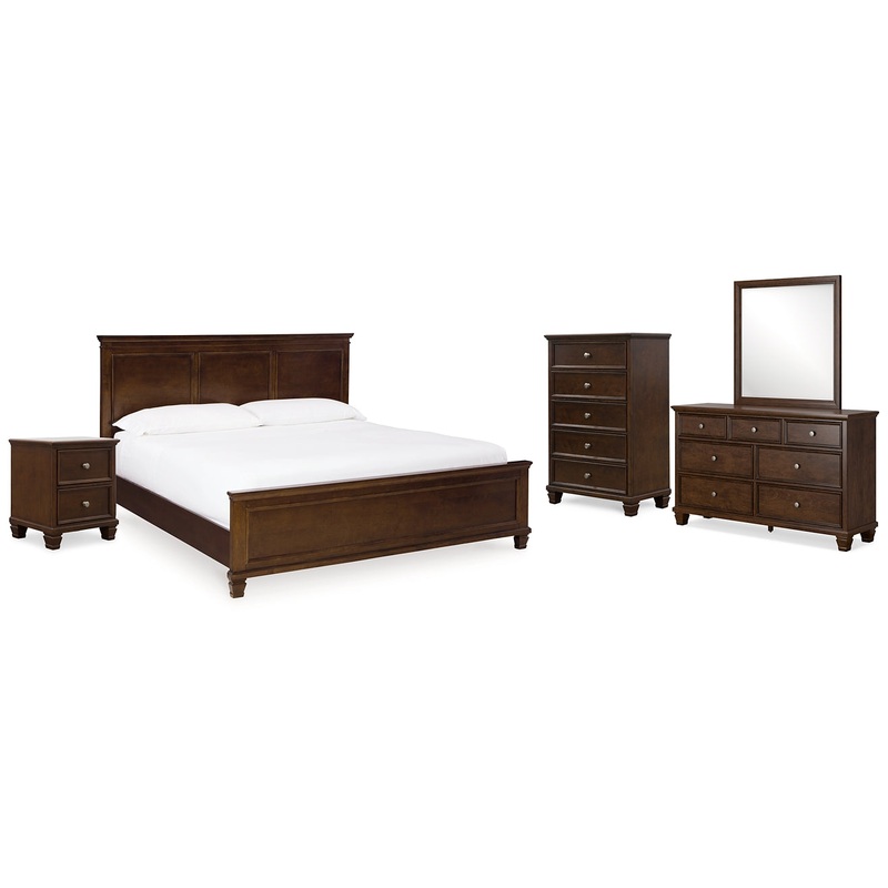 Danabrin King Panel Bed with Mirrored Dresser, Chest and Nightstand