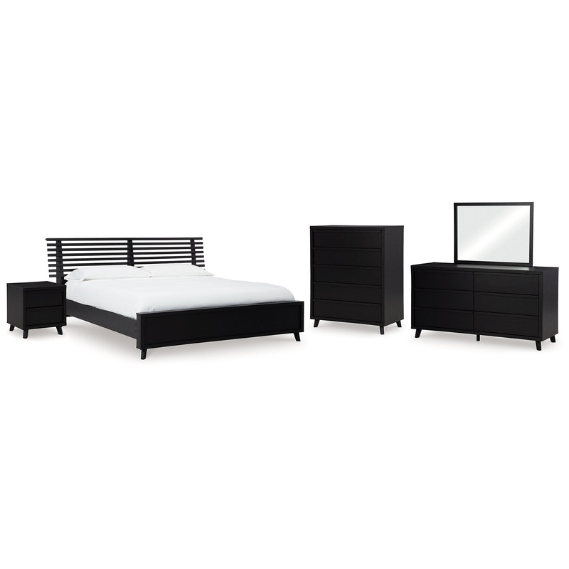 Details B1013B4: Includes headboard, footboard and roll slats, Made with engineered wood (MDF/particleboard/plywood) and decorative laminate for the right balance of affordability and durability, Matte black finish with subtle replicated wood grain, Decorative laminate replicates natural or man-made material surfaces with consistent color, pattern and texture , Bed does not require a foundation/box spring , Mattress available, sold separately , Minor assembly required, B1013B11: Includes dresser and mirror, Made with engineered wood (MDF/particleboard/plywood) and decorative laminate for the right balance of affordability and durability, Matte black finish with subtle replicated wood grain, Decorative laminate replicates natural or man-made material surfaces with consistent color, pattern and texture, 6 smooth-gliding drawers, Drawer interiors are lined with a faux linen laminate for a clean, finished look, Integrated drawer pulls, Framed front and pilasters, Mirror attaches to back of dresser; can also be mounted on wall horizontally or vertically, Safety is a top priority, clothing storage units are designed to meet the most current standard for stability, ASTM F 2057 (ASTM International), Drawers extend out to accommodate maximum access to drawer interior while maintaining safety, Minor assembly required, B1013-345: Made with engineered wood (MDF/particleboard/plywood) and decorative laminate for the right balance of affordability and durability, Matte black finish with subtle replicated wood grain, Decorative laminate replicates natural or man-made material surfaces with consistent color, pattern and texture, 5 smooth-gliding drawers, Drawer interiors are lined with a faux linen laminate for a clean, finished look, Integrated drawer pulls, Framed front and pilasters, Safety is a top priority, clothing storage units are designed to meet the most current standard for stability, ASTM F 2057 (ASTM International), Drawers extend out to accommodate maximum access to drawer interior while maintaining safety, Minor assembly required, B1013-92: Made with engineered wood (MDF/particleboard/plywood) and decorative laminate for the right balance of affordability and durability, Matte black finish with subtle replicated wood grain, Decorative laminate replicates natural or man-made material surfaces with consistent color, pattern and texture, 2 smooth-gliding drawers, Drawer interiors are lined with a faux linen laminate for a clean, finished look, Integrated drawer pulls, Framed front and pilasters, USB and wireless charging options, Power cord included; UL Listed, Minor assembly required,