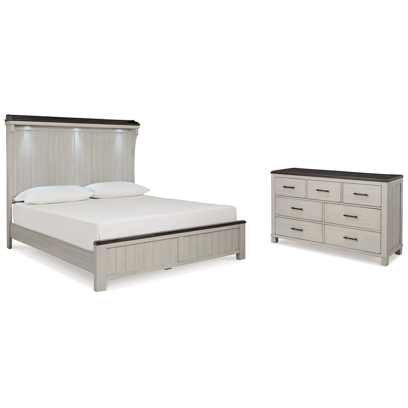 Make a farmhouse-inspired statement with the Darborn bedroom package. Beautifully crafted to stand the test of time, the planked effect and clean two-tone finish lend a relaxing vintage feel.