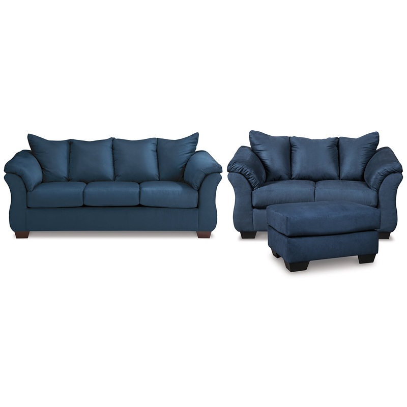 Talk about fine lines and great curves. That's the beauty of this sofa, loveseat, and ottoman setmade to suit your appreciation for clean, contemporary style. Striking flared profiles, comfy pillow top armrests and an ultra-soft upholstery that holds up to