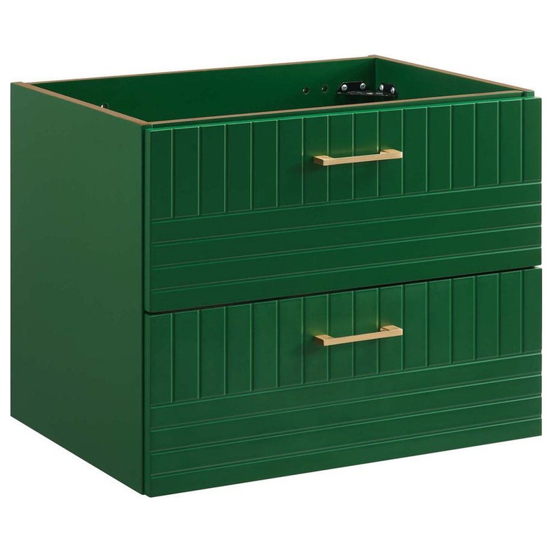 Refresh your bathroom space with the contemporary style of the Daybreak 24 Wall-Mount Bathroom Vanity. Featuring a modern silhouette, sophisticated matte finish, and brushed gold metal hardware, this vanity is durably crafted with a blend of rubberwood, MDF, and particleboard to create a lasting vanity for your bathroom. Mounting directly to your wall and saving substantial floor space, this bathroom vanity is complete with ample storage in its drawers to accommodate bathroom essentials and a cut-out design in the top drawer for plumbing. Assembly required. Sink basin and fixtures not included.