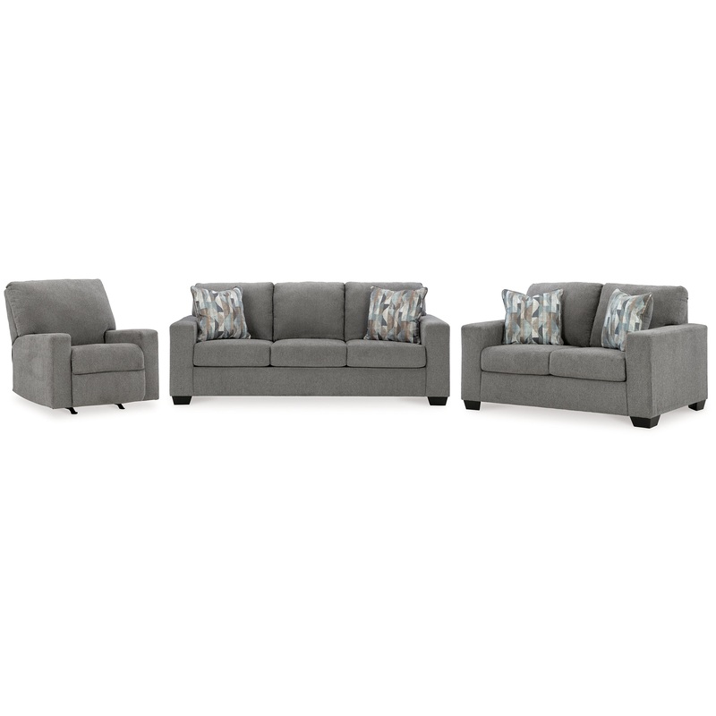 Youre in for a neat treat with this seating package. Its comfy seats are covered in soft, textural fabric, and the wide track arms are eager to support your quest for total relaxation. With a stunning neutral hue, the set brings a fresh breath of contempor