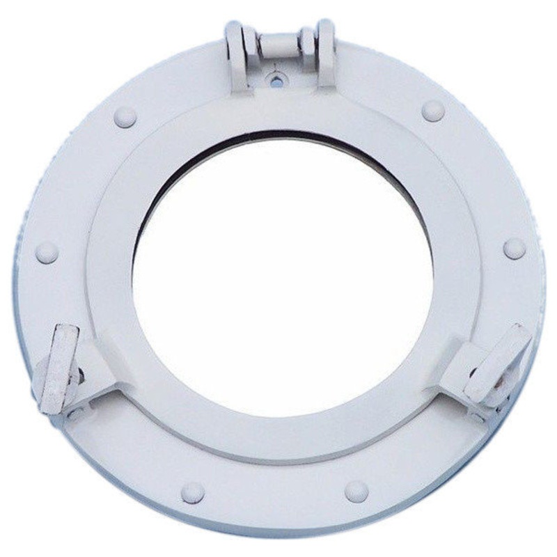 This Brass Deluxe Class Porthole Mirror 8'' White adds sophistication, style, and charm for those looking to enhance rooms with a nautical theme. This boat porthole has a sturdy, heavy and authentic appearance, and is made of brass and glass which can easi