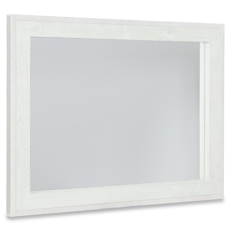 The Highland Park collection blends the best features of mid-century and farmhouse design, delivering an eclectic appeal with a laid-back vibe. The Denys mirror combines contrasting materials for a look that is both rustic and metropolitan. The metal outer frame is finished in glazed silver, while a Brushed White finish highlights the grain and imperfections in the distressed pine.