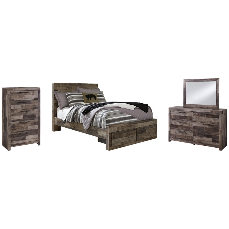Derekson Full Panel Bed with 2 Storage Drawers with Mirrored Dresser and Chest