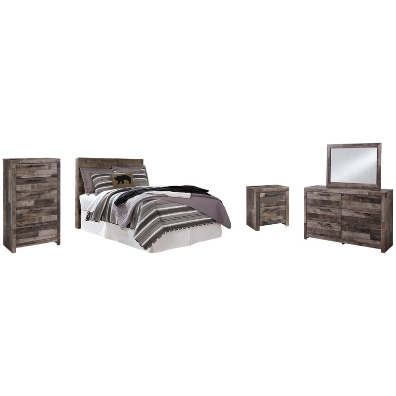 Derekson Full Panel Headboard with Mirrored Dresser, Chest and Nightstand