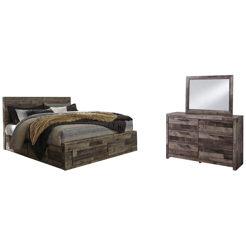 Derekson King Panel Bed with 6 Storage Drawers with Mirrored Dresser