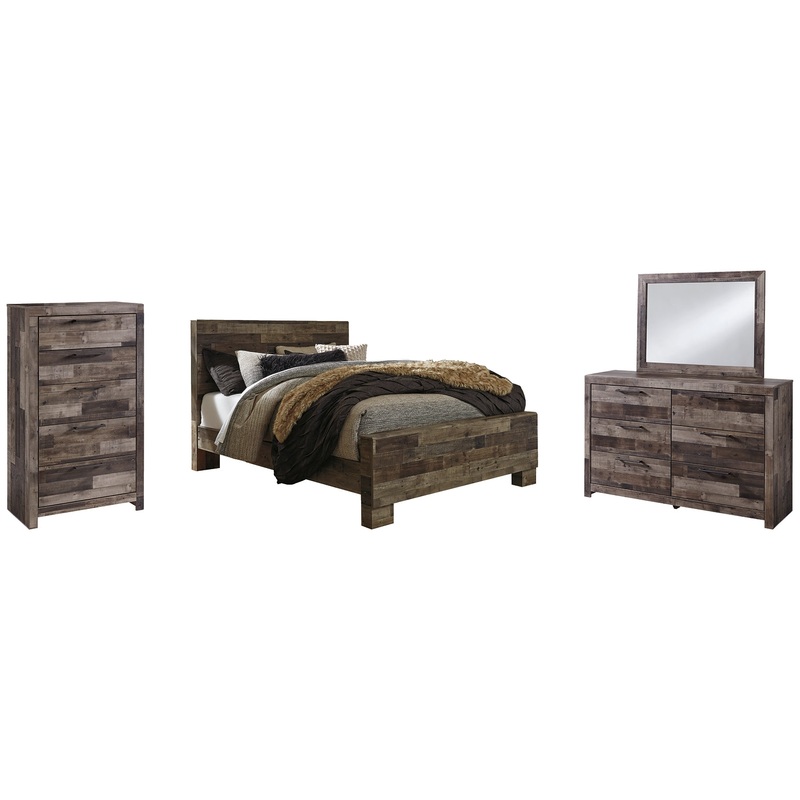Derekson Queen Panel Bed with Mirrored Dresser and Chest
