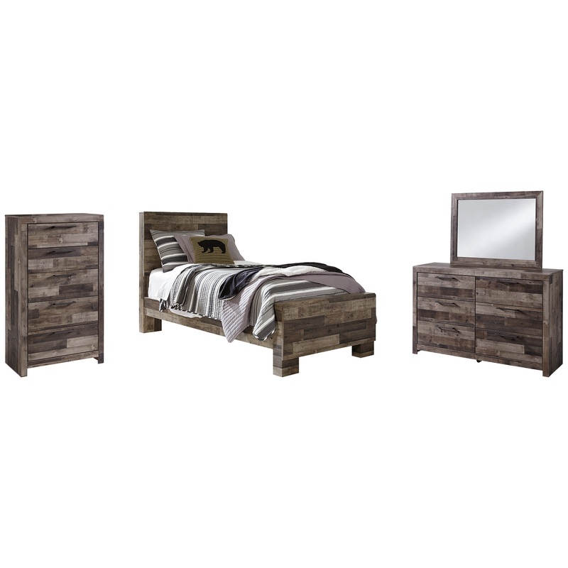 Derekson Twin Panel Bed with Mirrored Dresser and Chest