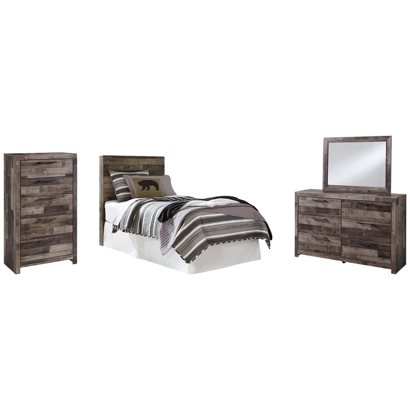 Derekson Twin Panel Headboard with Mirrored Dresser and Chest