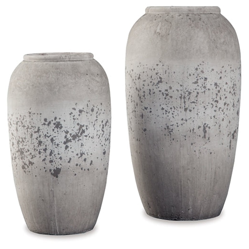 Is your home curated rather than simply decorated? Add another thoughtful piece into the mix with this 2-piece vase set. Brown and antique cream painted ceramic has a unique weatherworn finish. Add fresh florals for a vintage-inspired look.Includes 2 vases