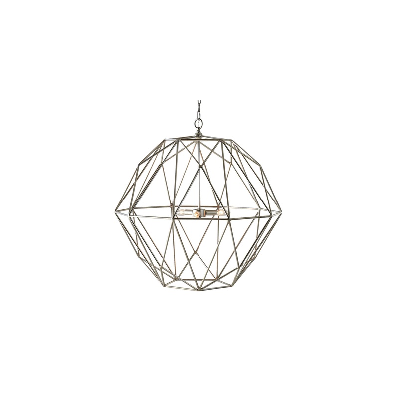 Inspired by the geodesic domes popularized in the 50’s and 60’s, the Dypilon Chandelier is a superb architectural design. Slender iron rods are meticulously welded creating this classic minimalist pattern.The hand applied authentic silver leaf finish adds a polished luster.