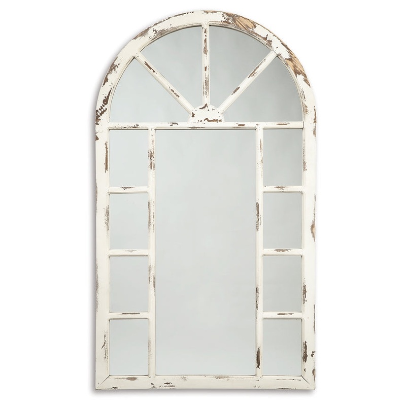 Talk about great window dressing. With its farmhouse window styling, this accent mirror is sure to grace your space in a beautiful way. The heavily distressed white finish mimics the look of chipped paint, for an aesthetic thats all the better for the wear