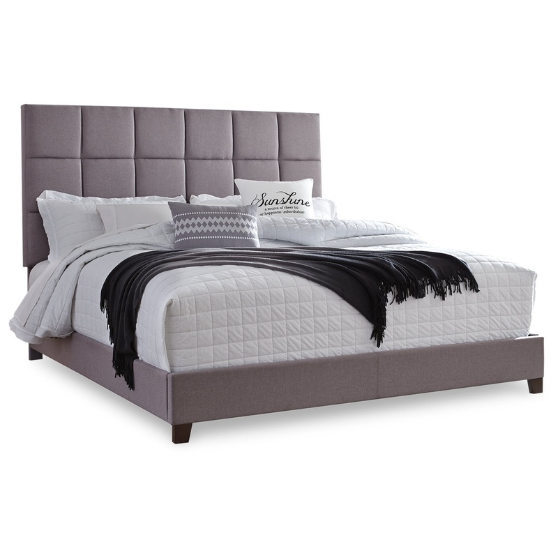 Serenity now. This king upholstered bed is sure to awaken a love for modern platform styling with a softer side. Plush to the touch and so easy on the eyes, a dusty gray fabric hugs the bedfrom the chic headboard with stitched square tufting, to the low fo