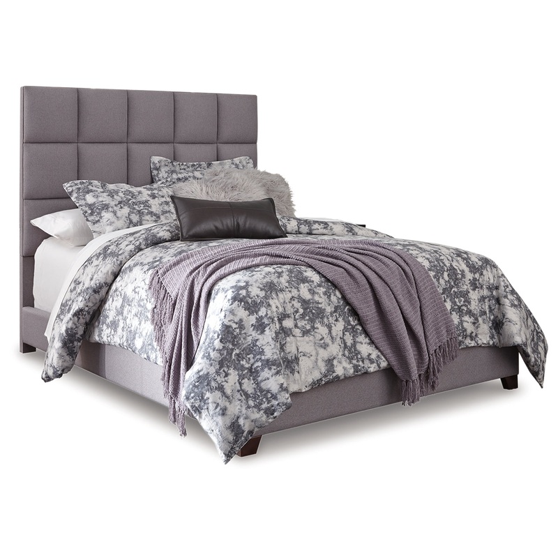 Serenity now. This queen upholstered bed is sure to awaken a love for modern platform styling with a softer side. Plush to the touch and so easy on the eyes, a dusty gray fabric hugs the bedfrom the chic headboard with stitched square tufting, to the low f