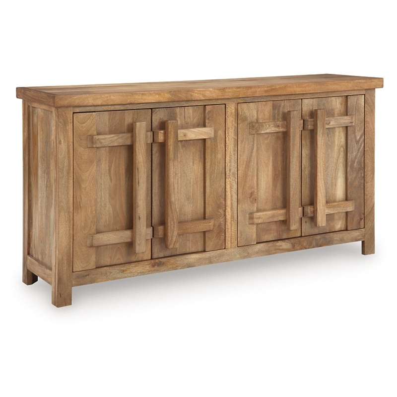 Say hello to style and bid farewell to clutter without compromising on design. This accent cabinet radiates refined modern craftsman influence. Impressive detailing and cabinets with dynamic oversized wooden pulls create organic appeal. Offering ample storage space for your essentials, don’t just organize your homeartfully arrange it.