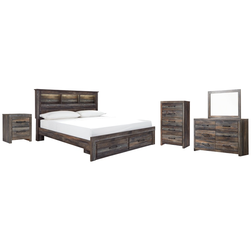 | Details | B211-46: Made of engineered wood (MDF/particleboard) and decorative laminate, Brown rustic finish with burnt orange and teal accents in a replicated wood grain with authentic touch, Large-scale hardware with dark finish, 5 smooth-gliding drawers, Drawer interiors are lined with a faux linen laminate for a clean, finished look, Includes tipover restraint device, Small Space Solution, Safety is a top priority, clothing storage units are designed to meet the most current standard for stability, ASTM F 2057 (ASTM International), Drawers extend out to accommodate maximum access to drawer interior while maintaining safety, B211-92: Made of engineered wood (MDF/particleboard) and decorative laminate, Brown rustic finish with burnt orange and teal accents in a replicated wood grain with authentic touch, 2 smooth-gliding drawers, Drawer interiors are lined with a faux linen laminate for a clean, finished look, Large-scale hardware with dark finish, 2 slim-profile USB-C charging stations, Power cord included; UL Listed, Small Space Solution, B211B1: Made of engineered wood (MDF/particleboard) and decorative laminate, Brown rustic finish with burnt orange and teal accents in a replicated wood grain with authentic touch, 6 smooth-gliding drawers, Drawers lined with faux linen laminate, Dark-tone industrial hardware, Mirror attaches to back of dresser, Assembly required, Includes tipover restraint device, B211B23: Includes bookcase headboard, footboard with storage and rails, Made of engineered wood (MDF/particleboard) and decorative laminate, Brown rustic finish with burnt orange and teal accents in a replicated wood grain with authentic touch, Headboard includes a dimming LED light, 2 smooth-gliding drawers in footboard, Small Space Solution, Foundation/box spring required, sold separately, Mattress available, sold separately, Assembly required, |