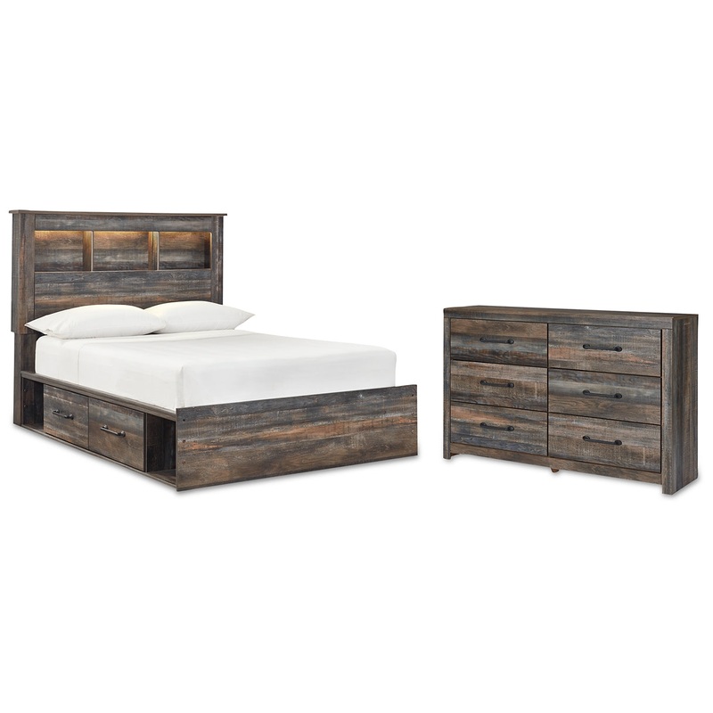 When merged in just the right way, rustic and industrial styles can make one happy marriage. Case in point: this bedroom package. A refined take on barn board beauty, its complex, replicated wood grain showcases hints of burnt orange and teal tones for a sense of weatherworn authenticity. Elongated metal drawer pulls elevate the aesthetic.