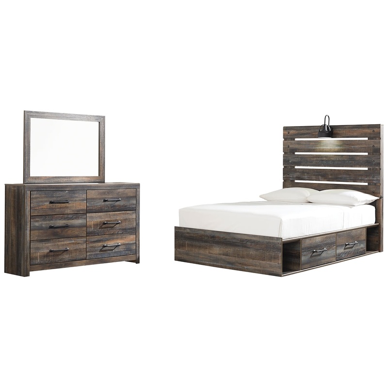 Drystan Full Panel Bed with 4 Storage Drawers with Mirrored Dresser