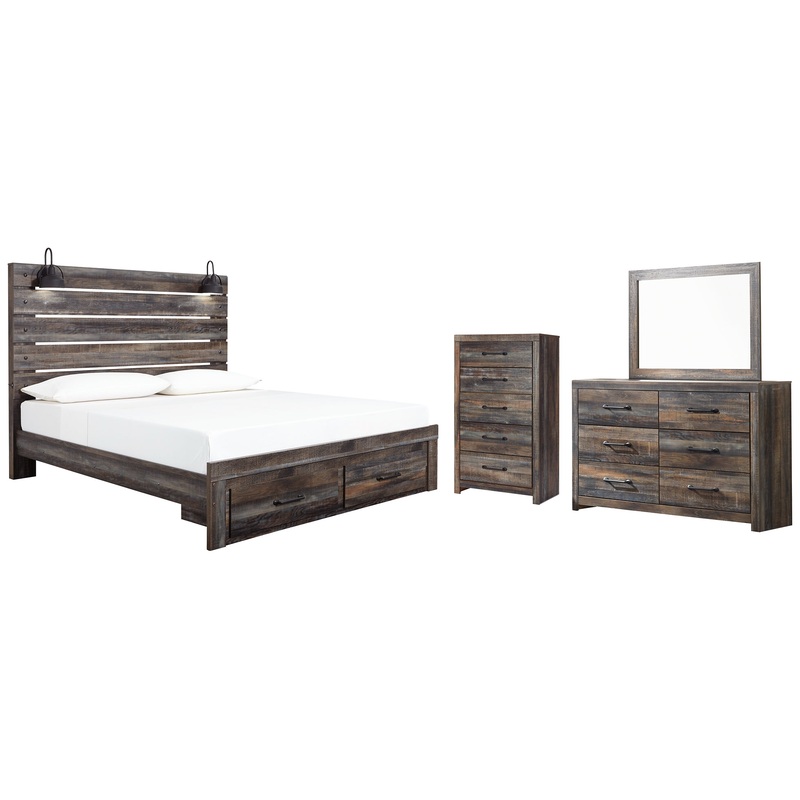 Drystan King Panel Bed with Storage with Mirrored Dresser and Chest