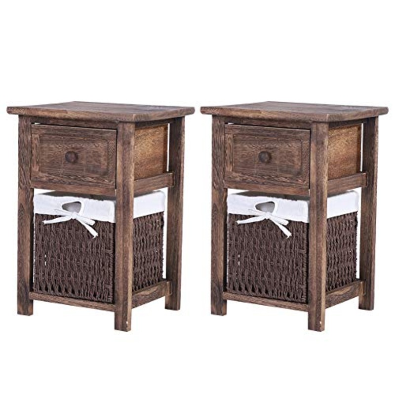 Dsrgwe Comodini Set di 2 Shabby Chic Wooden Wooden Night Stand Storage unit Armadi con Cassetti E Cestino Brown