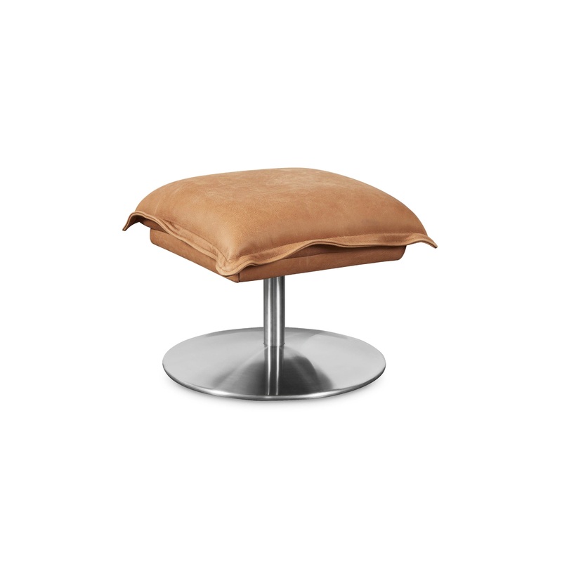 The Dunn Ottoman is designed to expand the ergonomic function of the Dunn Swivel Recliner to its full capacity. This matching footstool is available in the same 3 aniline-dyed leather choices (Tan, Graphite or Chocolate) as the chair and features identical flanged detailing, making them a perfect pairing for comfort and style. Like the base on the Dunn chair, the stationary base of the ottoman is Brushed Stainless.