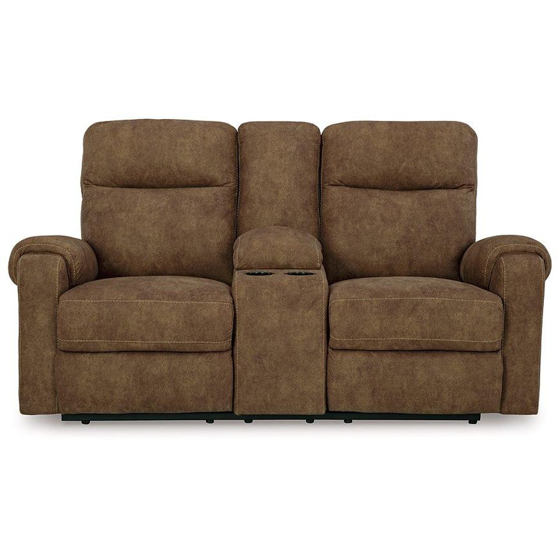 This reclining loveseat with console is your best shot for comfort and total relaxation. Its super soft faux leather, contemporary bustle back and contrast stitching team up for a big win with most any color scheme and room decor. With the pull tab reclini