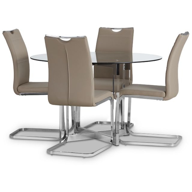 Capri Stainless Steel Ivory Round Table & 4 Upholstered Chairs