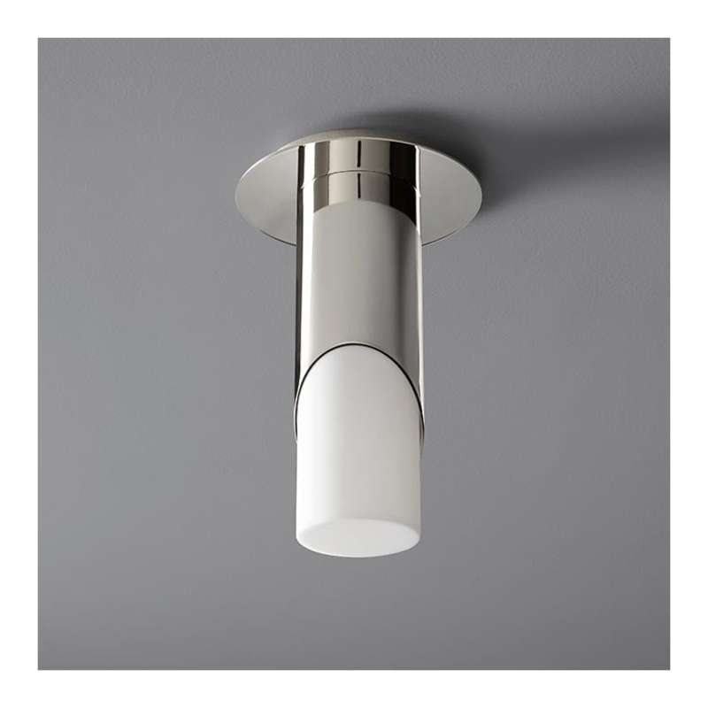 Simple in form and strong in style, the Ellipse small single-light flush mount ceiling fixture is versatile enough to work in a variety of rooms and decors. Featuring a cold-rolled steel cylindrical housing that tapers off to reveal the white acrylic shade