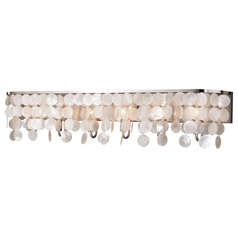 Elsa Satin Nickel Capiz Shell Coastal Bathroom Wall Light Fixture, 42-in. W x 9-in. H x 5.5-in. D – Beach Style – Bathroom Vanity Lighting – by Vaxcel