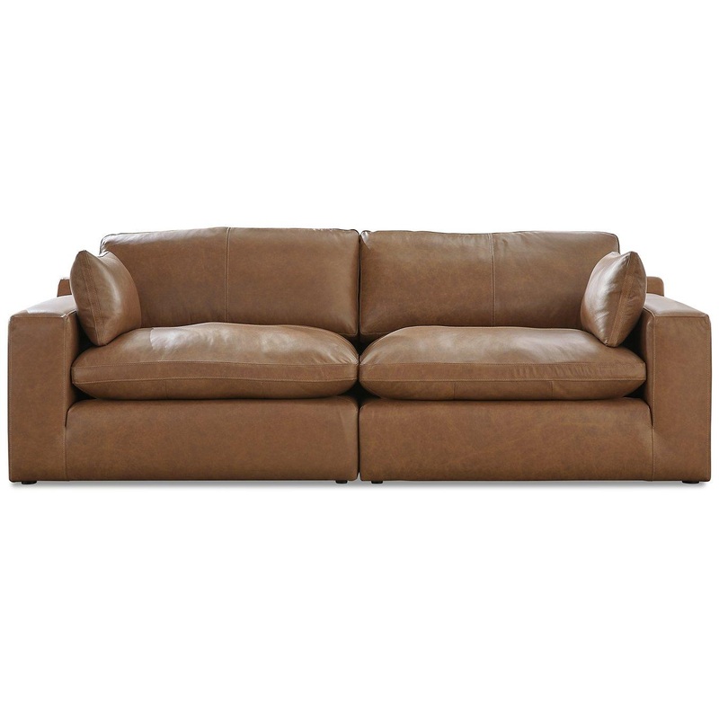 Catering to your contemporary lifestyle, this sectional loveseat is a handsome marriage of masculine and feminine sensibilities. Feather-fiber cushions and bolster pillows soften the look of its chunky, linear silhouette. Warmly hued leather match upholstery levels up the affordable luxury. And you’ll never run out of ways to stage this seating arrangementeach piece is fully finished on all sides and capable of standing solo. Urban sophistication has never been more versatile.