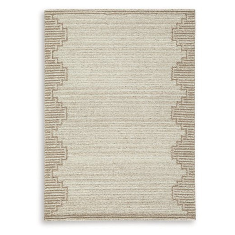 Dress up any floor with the tastefully approachable design of this rug. Its distinctive stepped border pattern, rendered in versatile neutrals, creates a subtly eye-catching look that brings modern elegance to any casual space. Crafted from wool with a generous pile, this rug doesn’t just stun with its good looksit also delivers an indulgent feel underfoot.