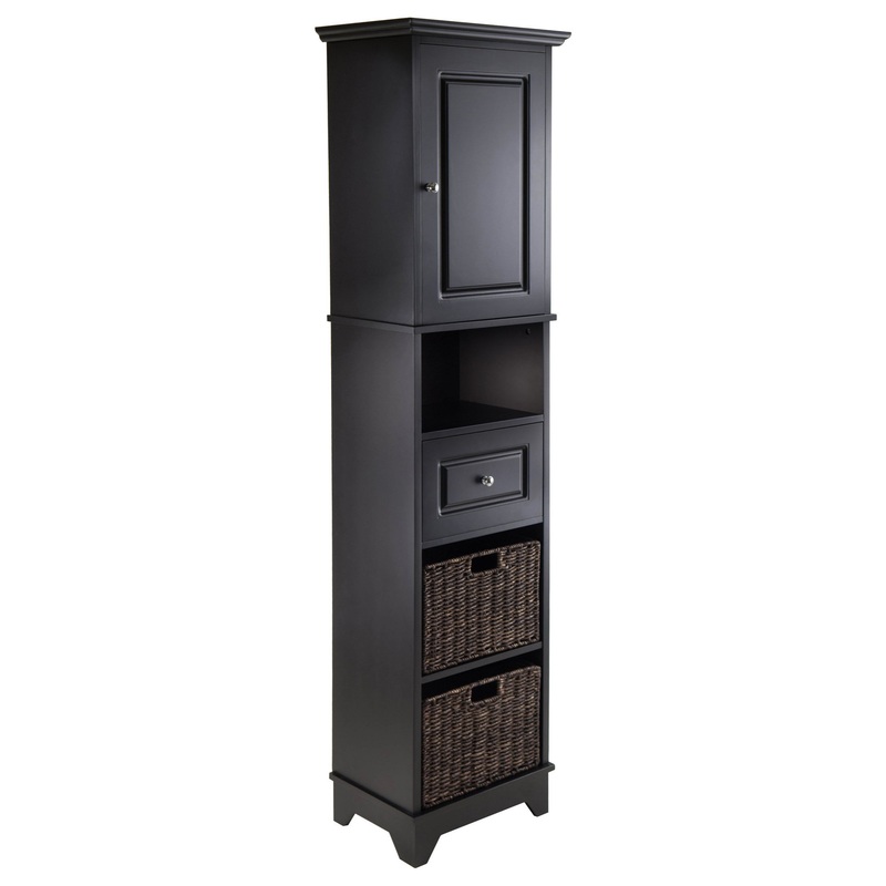 Ergode Wyatt Cabinet, 2 Corn Husk Baskets, BlackIdeal for anywhere in your home, the Ergode Wood Wyatt Cabinet is stylish and functional. Its elegant, rich black finish will add a touch of sophistication to any interior. It provides plenty of storage space for books, art, photos and more. The top of this black wooden cabinet features a wooden door with an adjustable shelf within. The middle section has open storage compartment and a drawer. The bottom includes a two-section storage area. Included with this unit are two foldable chocolate tone baskets that are a perfect fit for the bottom storage or to use anywhere else that may be convenient. So whether its in your living room, office or walk-in closet, this cabinet is constructed out of medium-density fiberboard (MDF) and is sure to deliver durable performance for years. The Ergode Wyatt Cabinet is ready for assembly, while the baskets only need to be prompt up and will be ready to use. Conveniently ships in 1 box. Replacement parts can be requested directly to the manufacturer within 60 days from date of purchase . Dimension: 18.11″ W x 12.99″ D x 70.87″ H, Weight: 61.6