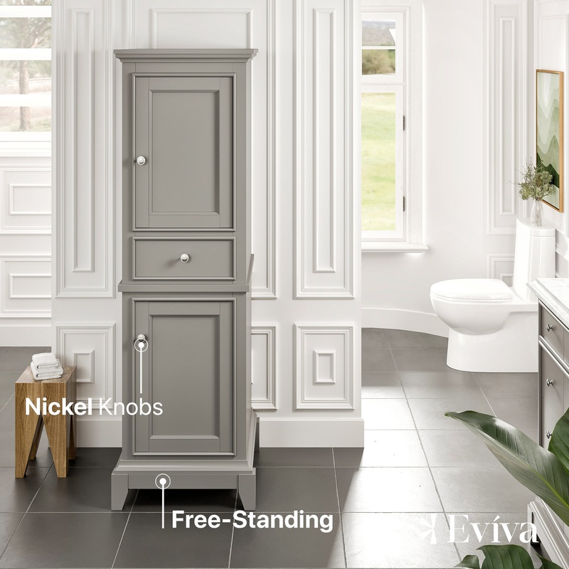 Eviva Elite Stamford solid wood linen side cabinet is one of the most elegant bathroom furniture lines designed. The 2 large soft closing doors and 1 middle drawer provides ample space. This cabinet provides a luxurious accent to any bathroom. Available in