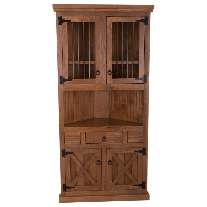 -Please Reference to Second photo for Color Option being chose. -Natural variations like wood knots and natural grain marks will always vary. -A Rustic/FarmHouse Corner Dinning Hutch/Buffet with Barn style doors. -1 Adjustable upper shelf with steel bars -