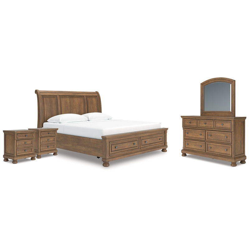 Feddinger King Storage Sleigh Bed with Mirrored Dresser and 2 Nightstands